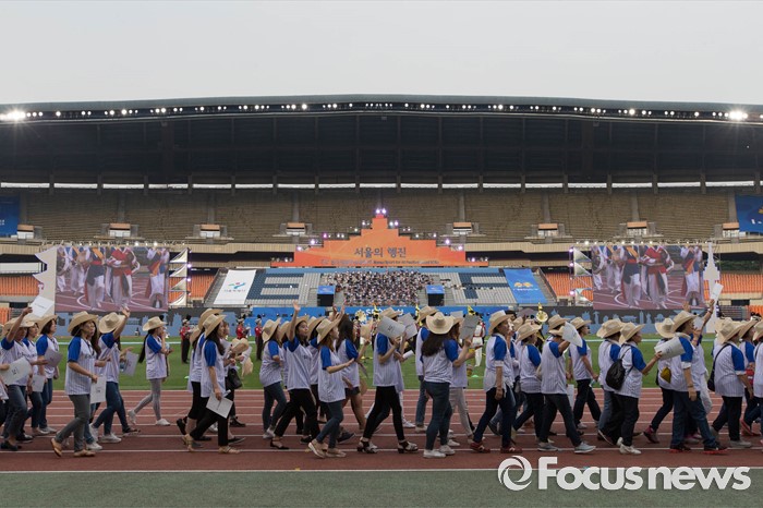 (서울=포커스뉴스) 2016 전국생활체육대축전 개막식이 열린 27일 오후 서울 송파구 잠실 올림픽주경기장에서 개막 축하 퍼레이드가 진행되고 있다.