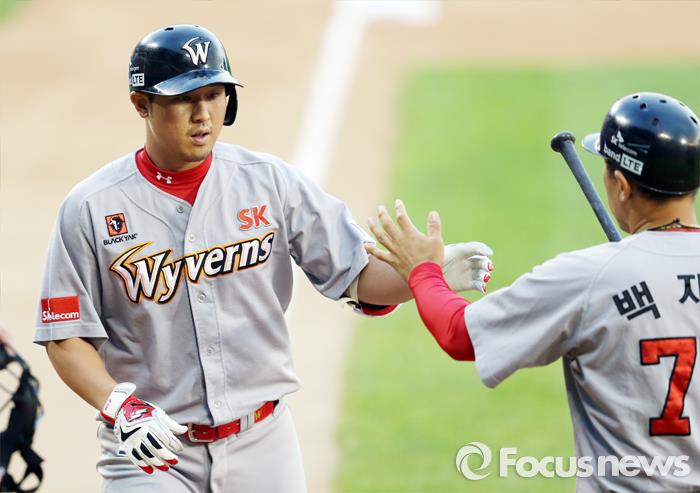 경기 전 양준혁 야구재단과 함께하는 최정의 '야구꿈나무 후원 선수용품 전달식' 행사도 열린다. 야구 꿈나무 후원 선수 20명 중 14명이 참여해 최정으로부터 야구용품을 전달받는다.(서울=포커스뉴스) 28일 서울 잠실구장에서 열린 SK-LG전, 1회 SK 최정이 2사후 우중월 솔로 홈런을 치고 홈인하고 있다. 2015.08.28 우정식 기자
