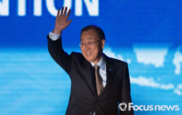 (서울=포커스뉴스) 반기문 유엔 사무총장이 29일 오전 경기 고양시 킨텍스 제1전시장에서 열린 2016 국제로타리 세계대회에 참석해 인사하고 있다.