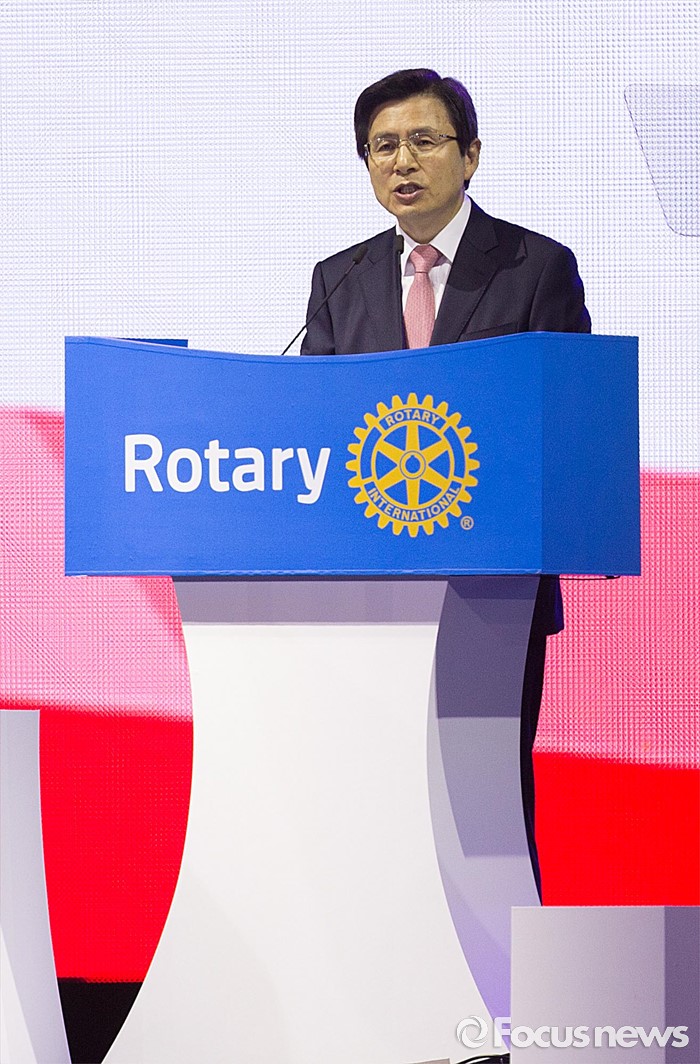 (서울=포커스뉴스) 황교안 국무총리가 29일 오전 경기 고양시 킨텍스 제1전시장에서 열린 2016 국제로타리 세계대회에 참석해 인사말을 하고 있다.
