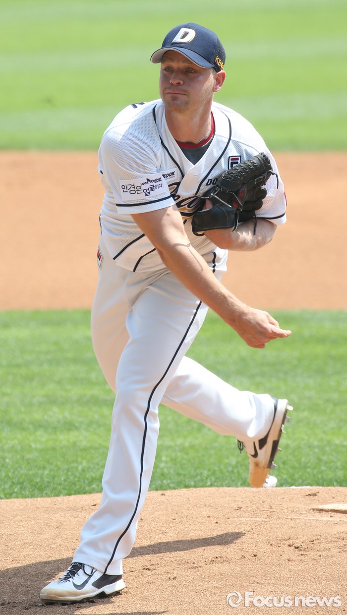 (서울=포커스뉴스) 29일 서울 잠실구장에서 열린 2016프로야구 LG-두산 경기에서 1회초 두산 선발투수 보우덴이 투구하고 있다.