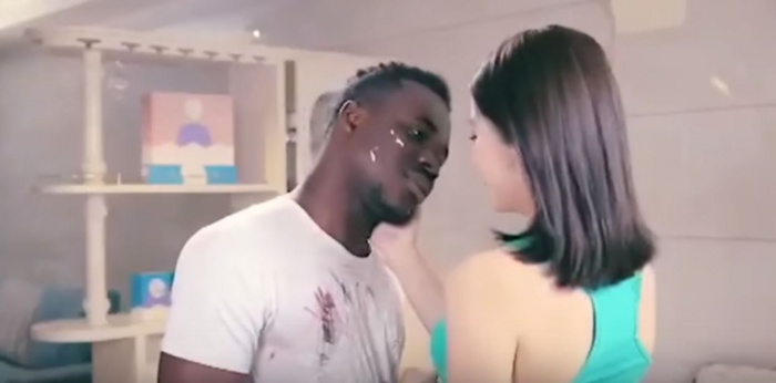 치아오비 세탁 세제 광고는 얼굴에 페인트를 묻힌 한 흑인 남성이 중국 여성에게 접근하는 장면으로 시작한다. 뒤이어 광고에 등장한 여성이 흑인 남성을 세탁기에 넣는 장면이 이어진다.