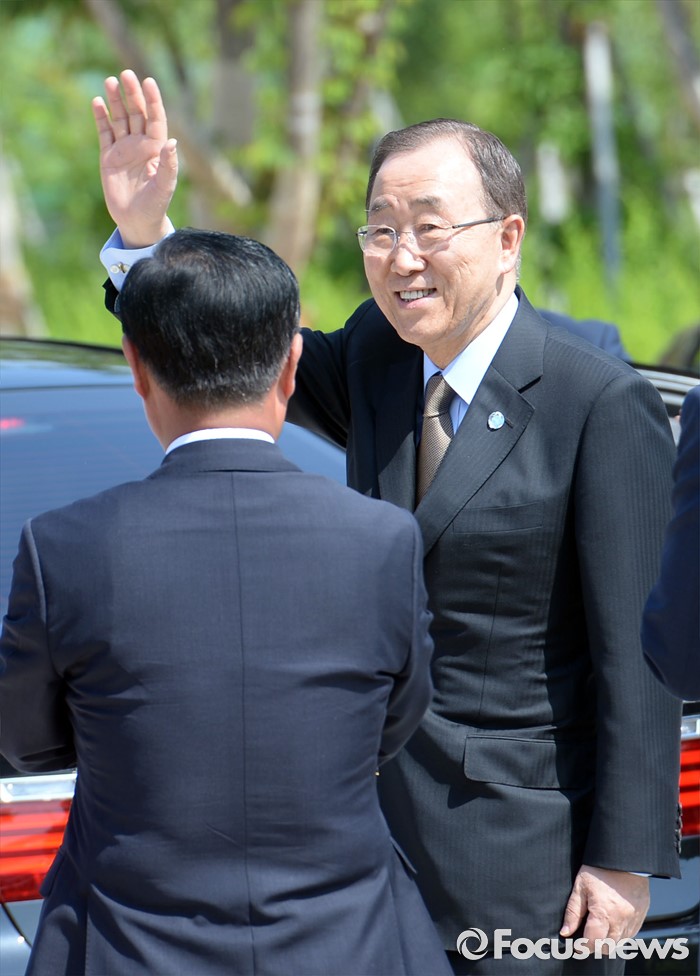 (안동=포커스뉴스) 반기문 유엔 사무총장이 29일 오후 경북 안동 하회마을 방문해 시민들에게 인사하고 있다.