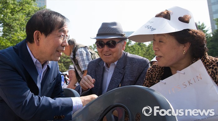 (서울=포커스뉴스) 박원순 서울시장이 29일 오후 서울 종로구 교동초등학교에서 열린 '2016 효자손 어르신 대축제'에 참석해 어르신들과 대화를 나누고 있다.