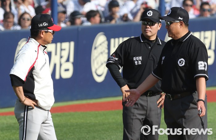 | △ 항의하는 LG 양상문 감독 |