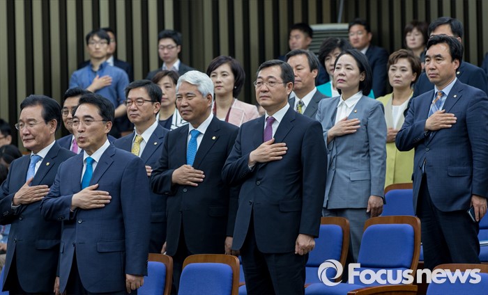 | △ 국민의례 하는 더민주 의원들 |