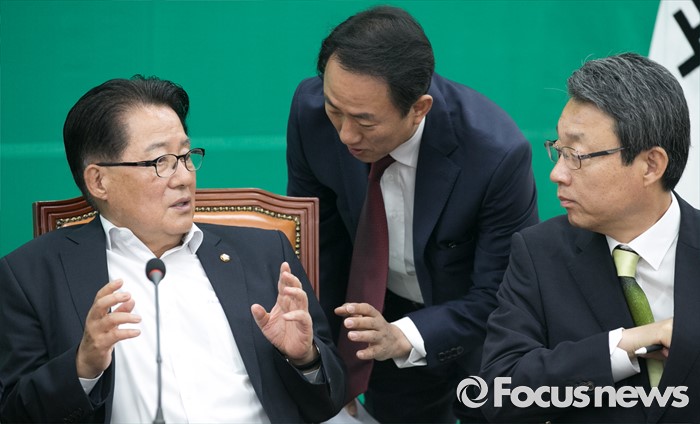 (서울=포커스뉴스) 20대 국회 임기가 시작된 30일 오전 서울 여의도 국회에서 열린 국민의당 최고위원회의에 참석한 박지원(왼쪽부터) 원내대표, 김명진 원내대표비서실장, 김성식 정책위의장이 대화하고 있다.