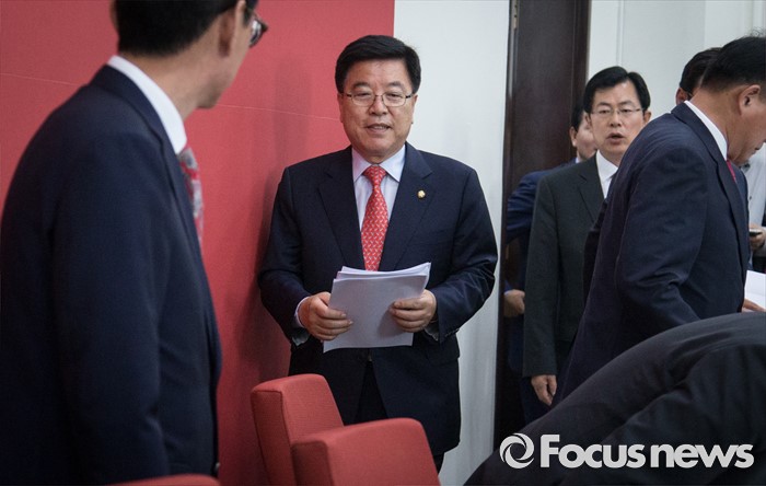 (서울=포커스뉴스) 김광림(왼쪽 두번째) 새누리당 정책위의장이 30일 오전 서울 여의도 국회에서 열린 원내대표단회의에 참석하고 있다.