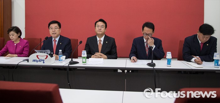 (서울=포커스뉴스) 정진석(가운데) 새누리당 원내대표와 김광림(왼쪽 두번째) 정책위의장을 비롯한 원내대표단이 30일 오전 서울 여의도 국회에서 원내대표단회의를 하고 있다.