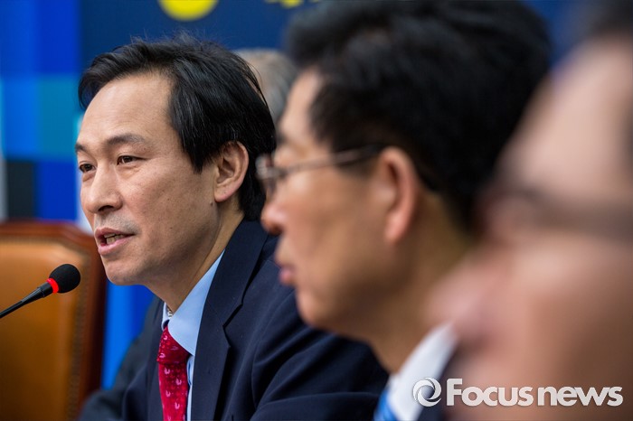 (서울=포커스뉴스) 우상호 더불어민주당 원내대표가 30일 오전 서울 여의도 국회에서 열린 비상대책위원회의에 참석해 모두발언 하고 있다.