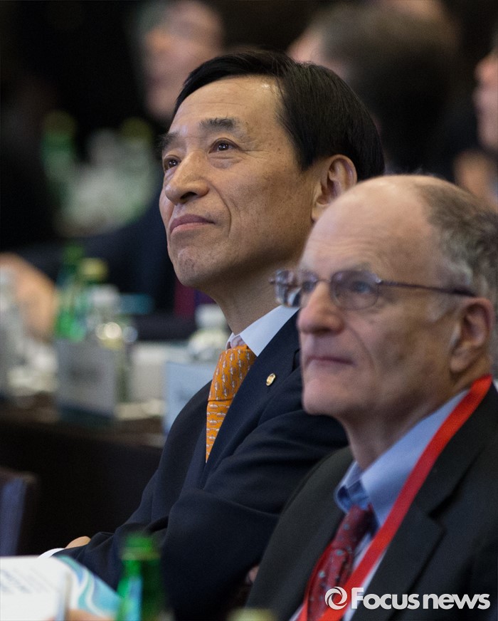 (서울=포커스뉴스) 30일 오전 서울 중구 웨스틴조선호텔에서 열린 2016 한국은행 국제컨퍼런스에서 이주열 한국은행 총재가 주민 국제통화기금(IMF) 부총재의 기조연설을 경청하고 있다.
