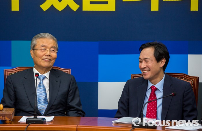 (서울=포커스뉴스) 김종인(왼쪽) 더불어민주당 비상대책위 대표와 우상호 원내대표가 30일 오전 서울 여의도 국회에서 열린 비상대책위원회의에 참석해 대화 나누고 있다.
