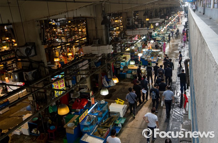 (서울=포커스뉴스) 30일 오전 서울 동작구 구 노량진수산시장에서 서울중앙지법 관계자들이 법원의 점유이전금지가처분을 집행하고 있다. 법원은 이날 영업은 지속하되 수협의 동의없이 가게를 타인에게 이전·전대하면 안된다고 상인들에게 통보 했다.