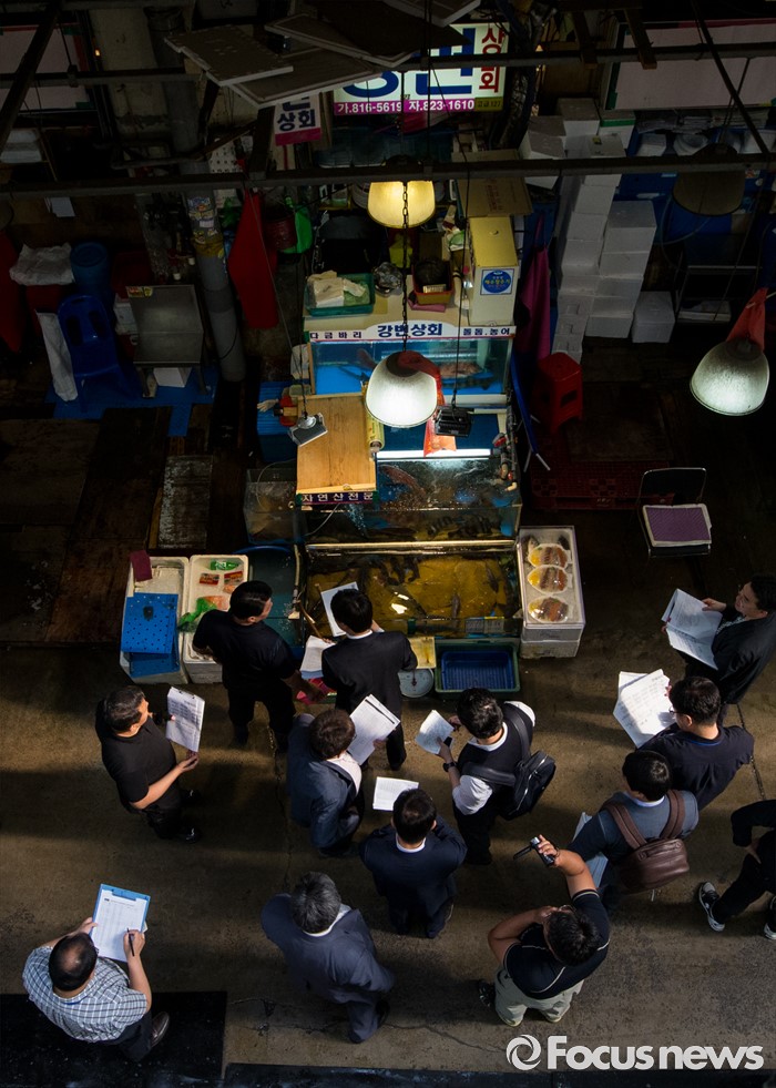 (서울=포커스뉴스) 30일 오전 서울 동작구 구 노량진수산시장에서 서울중앙지법 관계자들이 법원의 점유이전금지가처분을 집행하고 있다. 법원은 이날 영업은 지속하되 수협의 동의없이 가게를 타인에게 이전·전대하면 안된다고 상인들에게 통보 했다.
