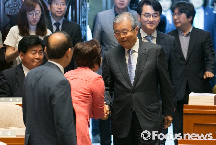 | △ 의원들과 인사하는 김종인 |