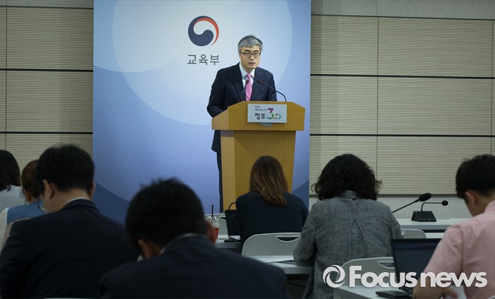 (세종=포커스뉴스) 이영 교육부 찬관이 30일 오전 세종시 정부세종청사 교육부 브리핑룸에서 누리과정 예산을 편성하지 않은 시도교육청에 대해 예산을 조속히 편성할 것을 촉구하고 있다.