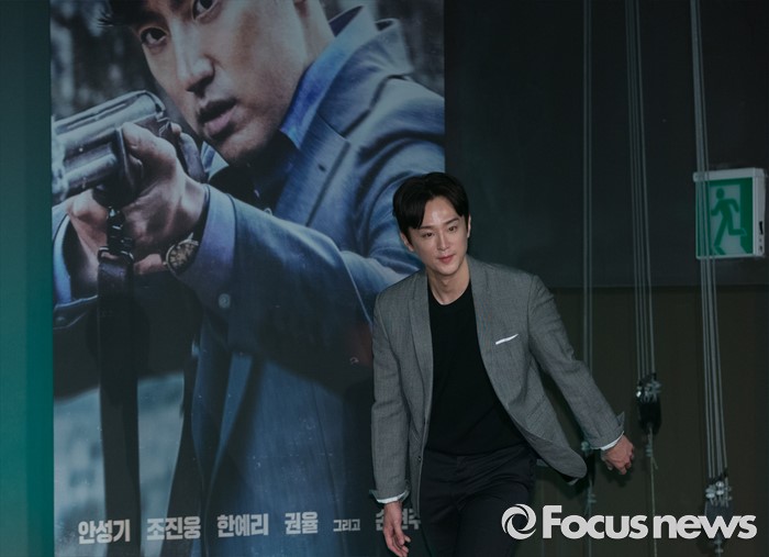 (서울=포커스뉴스) 30일 오전 서울 광진구 건대입구 롯데시네마에서 열린 영화 '사냥' 제작보고회에 참석한 배우 권율이 이동하고 있다.