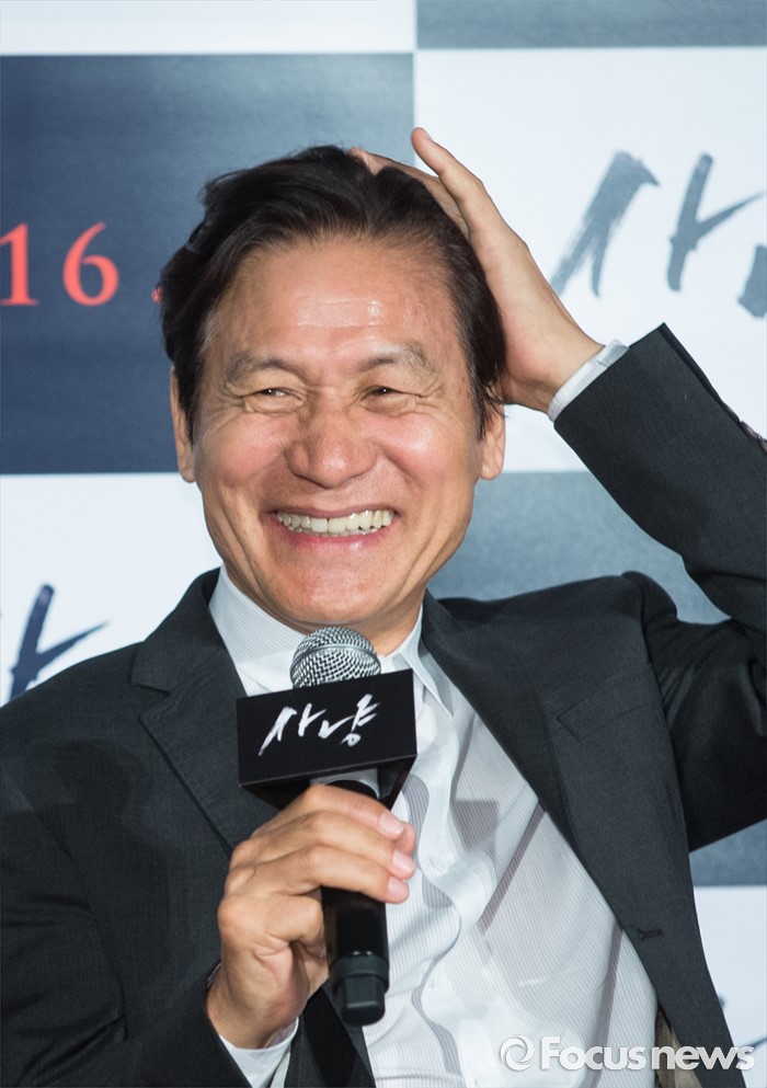 (서울=포커스뉴스) 30일 오전 서울 광진구 건대입구 롯데시네마에서 열린 영화 '사냥' 제작보고회에 참석한 배우 안성기가 미소를 짓고 있다.