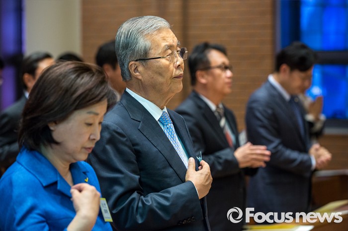 (서울=포커스뉴스) 김종인(왼쪽 두 번째) 더불어민주당 비상대책위 대표와 심상정 정의당 상임대표가 30일 오전 서울 중구 명동성당에서 열린 '국회의원 카톨릭 교우회 감사 미사'에 참석 하고 있다.