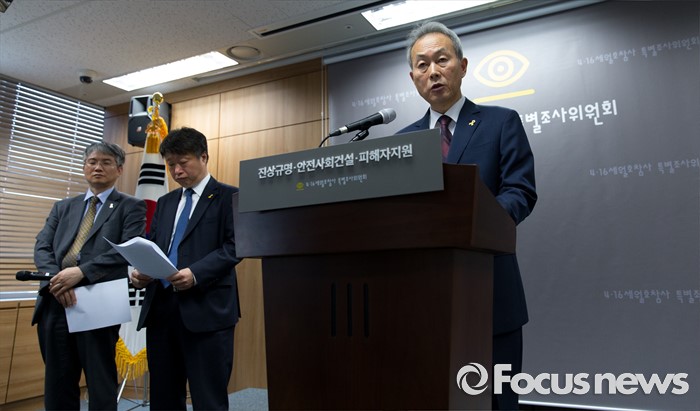 (서울=포커스뉴스) 30일 오후 서울 중구 4·16세월호참사 특별조사위원회에서 이석태 위원장이 기자회견을 하고 있다.