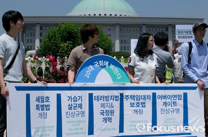 (서울=포커스뉴스) 30일 오전 서울 여의도 국회 앞에서 참여연대 등 관련단체 회원들이 20대 국회에서 우선 다뤄야 할 입법·정책과제 제안 및 국회 개혁 촉구 기자회견을 하고 있다.