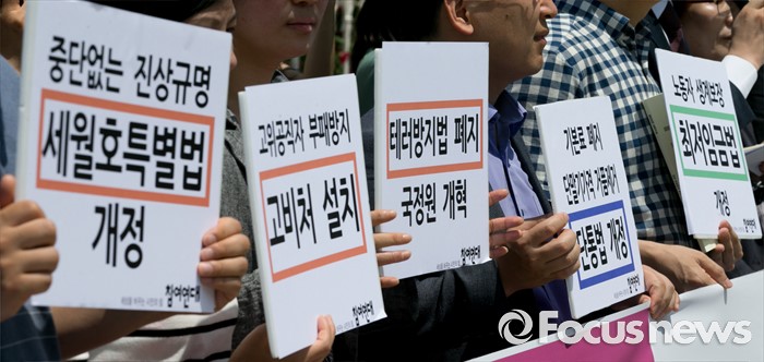 (서울=포커스뉴스) 30일 오전 서울 여의도 국회 앞에서 참여연대 등 관련단체 회원들이 20대 국회에서 우선 다뤄야 할 입법·정책과제 제안 및 국회 개혁 촉구 기자회견을 하고 있다.