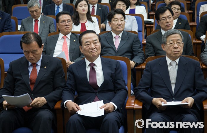 | △ 첫 의총 참석한 서청원과 김희옥 |