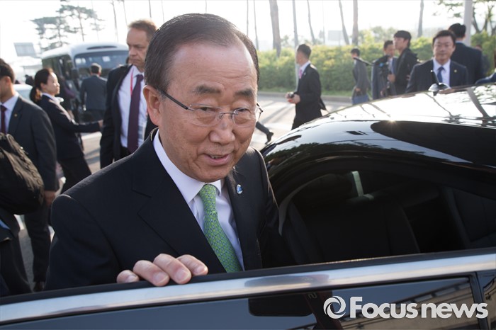 | △ 차량 올라타는 반기문 유엔 사무총장 |