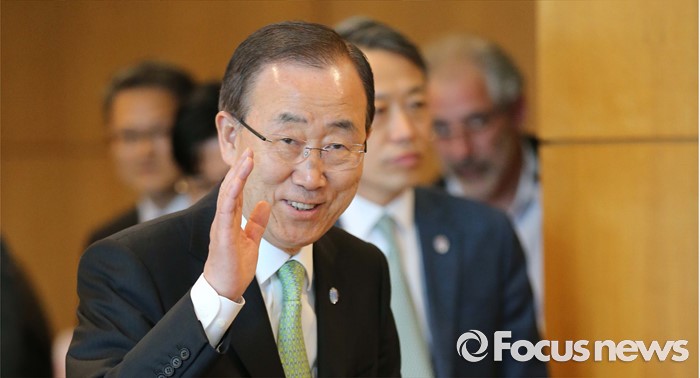 취재진에게 인사하는 반기문