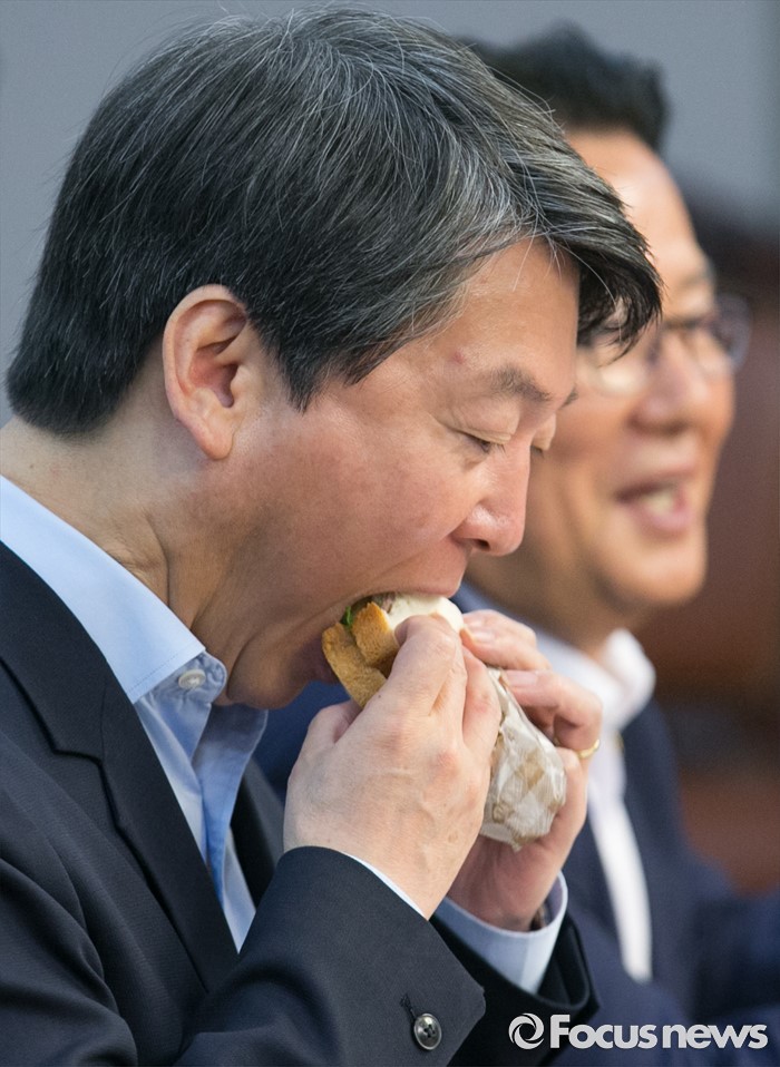 (서울=포커스뉴스) 31일 오전 서울 여의도 국회 의원회관에서 열린 국민의당 8차 정책역량강화 워크숍에 참석한 안철수 상임공동대표가 샌드위치를 먹고 있다.
