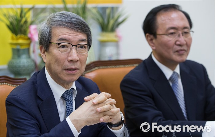 (서울=포커스뉴스) 정운찬(왼쪽) 동반성장연구소 이사장이 31일 오전 서울 여의도 국회에서 열린 정운찬 동반성장연구소 이사장 초청 특별강연에서 강연하고 있다. 이날 강연은 정의당의 '성역없이 듣겠습니다'란 이름의 의원단 연속 워크숍 '광폭 경청'의 일환으로 열렸다. 정 이사장은 '제20대 국회와 경제민주화'를 주제로 강연했다. 오른쪽은 노회찬 정의당 원내대표