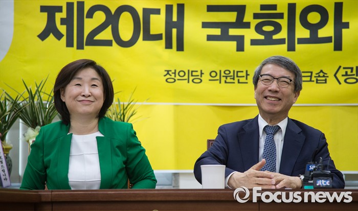 (서울=포커스뉴스) 심상정 정의당 대표(왼쪽)가 31일 오전 국회에서 열린 정운찬 동반성장연구소 이사장 초청 특별강연에서 정 이사장과 얘기를 나누고 있다. 이날 강연은 정의당의 '성역없이 듣겠습니다'란 이름의 의원단 연속 워크숍 '광폭 경청'의 일환으로 열렸다. 정 이사장은 '제20대 국회와 경제민주화'를 주제로 강연했다