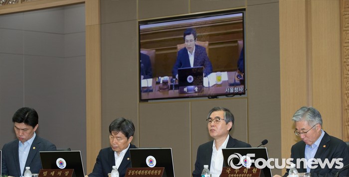 (세종=포커스뉴스) 31일 오전 세종시 정부세종청사 국무회의장에서 서울-세종 영상회의로 열린 국무회의에 참석한 국무위원들이 황교안 국무총리의 발언을 경청하고 있다.