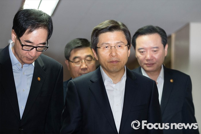 (서울=포커스뉴스) 31일 오전 서울 종로구 정부서울청사에서 열린 국무회의에 황교안(오른쪽 두 번째) 국무총리가 회의장으로 들어서고 있다.