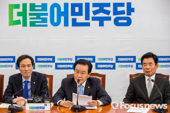 (서울=포커스뉴스) 변재일 더불어민주당 정책위의장이 31일 오전 서울 여의도 국회에서 열린 원내대책회의에 참석해 모두발언 하고 있다.