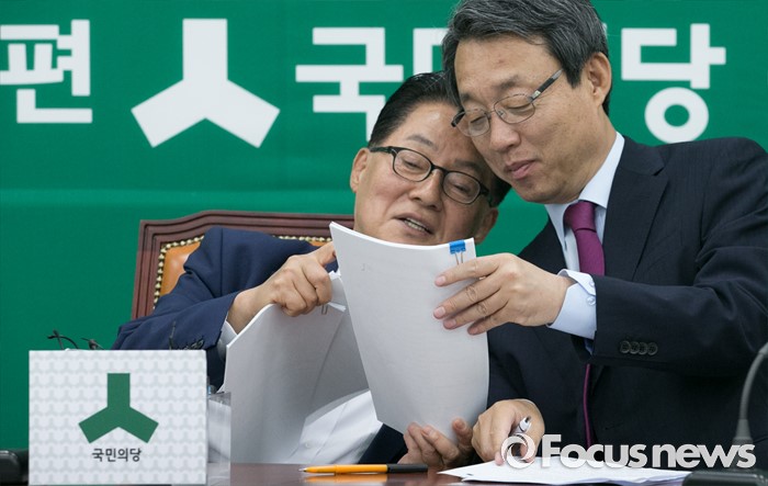 (서울=포커스뉴스) 31일 오전 서울 여의도 국회에서 열린 국민의당 원내대책회의에 참석한 박지원(왼쪽) 원내대표와 김성식 정책위의장이 대화하고 있다.