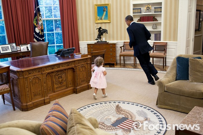 (서울=포커스뉴스) 2012년 7월 백악관 대통령 집무실에서 오바마 대통령이 어린아이와 함께 뛰놀고 있다. <사진출처=백악관 공식홈페이지 갈무리>
