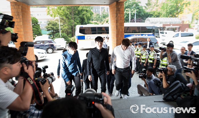 (서울=포커스뉴스) 지난 18일 20대 여성을 성폭행 하려다 미수에 그친 혐의를 받고 있는 개그맨 유상무가 31일 오전 서울 강남경찰서로 출두하고 있다.