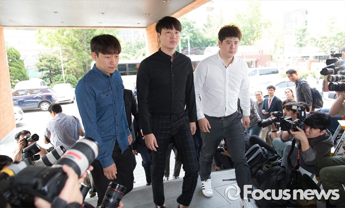 (서울=포커스뉴스) 지난 18일 20대 여성을 성폭행 하려다 미수에 그친 혐의를 받고 있는 개그맨 유상무가 31일 오전 서울 강남경찰서로 출두하고 있다.
