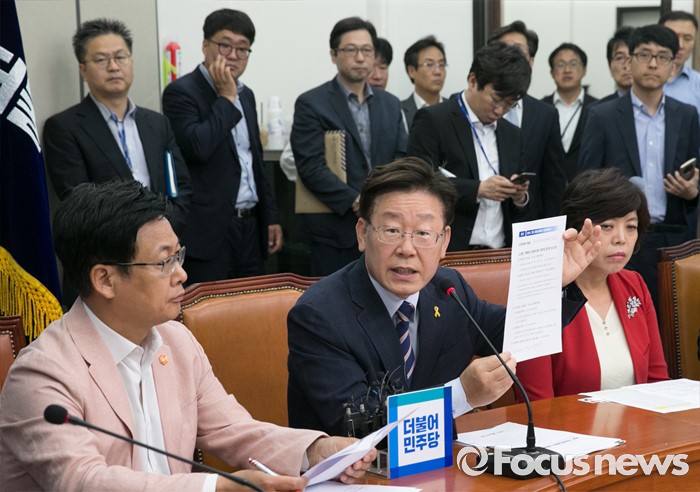 (서울=포커스뉴스) 이재명(가운데) 성남시장이 31일 오전 서울 여의도 국회에서 열린 지방재정 개편 관련 김종인 더불어민주당 비대위 대표 등과의 면담에 참석해 발언하고 있다.