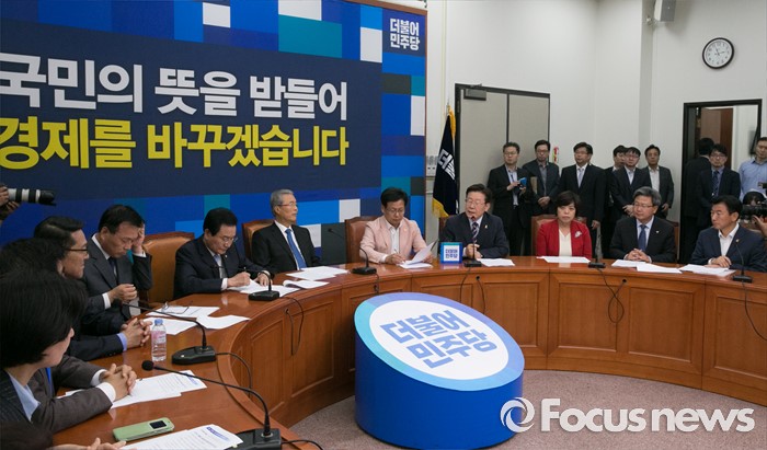 (서울=포커스뉴스) 이재명(오른쪽 네번째) 성남시장이 31일 오전 서울 여의도 국회에서 열린 지방재정 개편 관련 김종인 더불어민주당 비대위 대표 등과의 면담에 참석해 발언하고 있다.