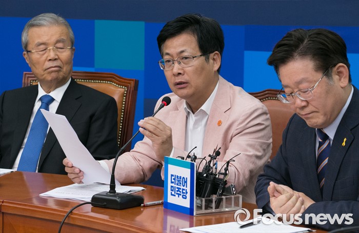 (서울=포커스뉴스) 최성(가운데) 고양시장이 31일 오전 서울 여의도 국회에서 열린 지방재정 개편 관련 김종인(왼쪽) 더불어민주당 비대위 대표 등과의 면담에 참석해 발언하고 있다. 오른쪽은 이재명 성남시장.
