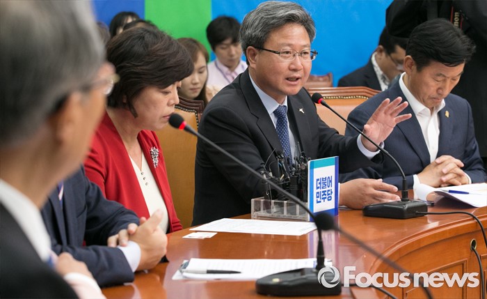 (서울=포커스뉴스) 채인석(오른쪽 두번째) 화성시장이 31일 오전 서울 여의도 국회에서 열린 지방재정 개편 관련 김종인 더불어민주당 비대위 대표 등 지도부와의 면담에 참석해 발언하고 있다.
