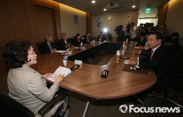 (서울=포커스뉴스) 한일간 일본군 위안부 합의에 따른 위안부 재단 설립 준비위원회 제1차회의가 열린 31일 오전 서울 세종로 대한민국역사박물관 회의실에서 위원장인 김태현 성신여대 명예교수 (왼쪽)와 위원들이 회의를 시작하고 있다.