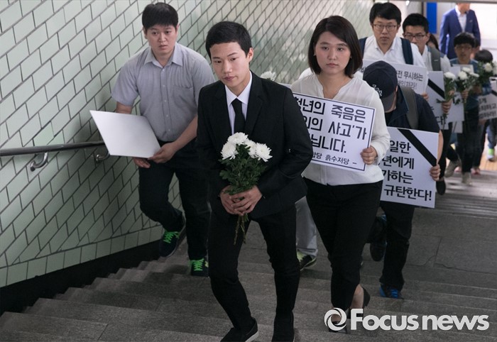 | △ 구의역 사건장소 향하는 청년단체 |