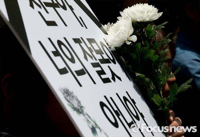 (서울=포커스뉴스) 31일 오후 서울 광진구 지하철 구의역 앞에서 한국청년연대 등 청년단체들이 스크린도어 정비 작업 중 사고로 숨진 김모(19) 씨 사건 항의 기자회견을 하고 있다.