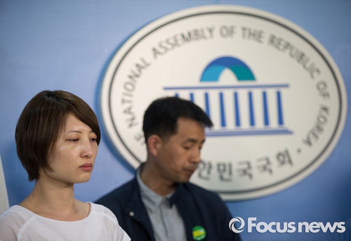 (서울=포커스뉴스) 31일 오후 서울 여의도 국회에서 열린 '야3당, 백남기 대책위 공동 기자회견'에서 백남기씨의 딸 백도라지씨가 생각에 잠겨 있다.이날은 경찰의 물대포 진압으로 지난해 11월14일 민중총궐기에서 쓰러진 백남기 농민이 사경을 헤맨 지 200일째되는 날이다.