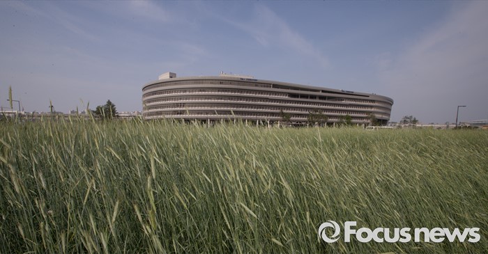 (세종=포커스뉴스) 31일 오후 세종시 정부세종청사 인근 한국토지주택공사 부지에 심은 호밀 넘어로 청사가 보이고 있다.
