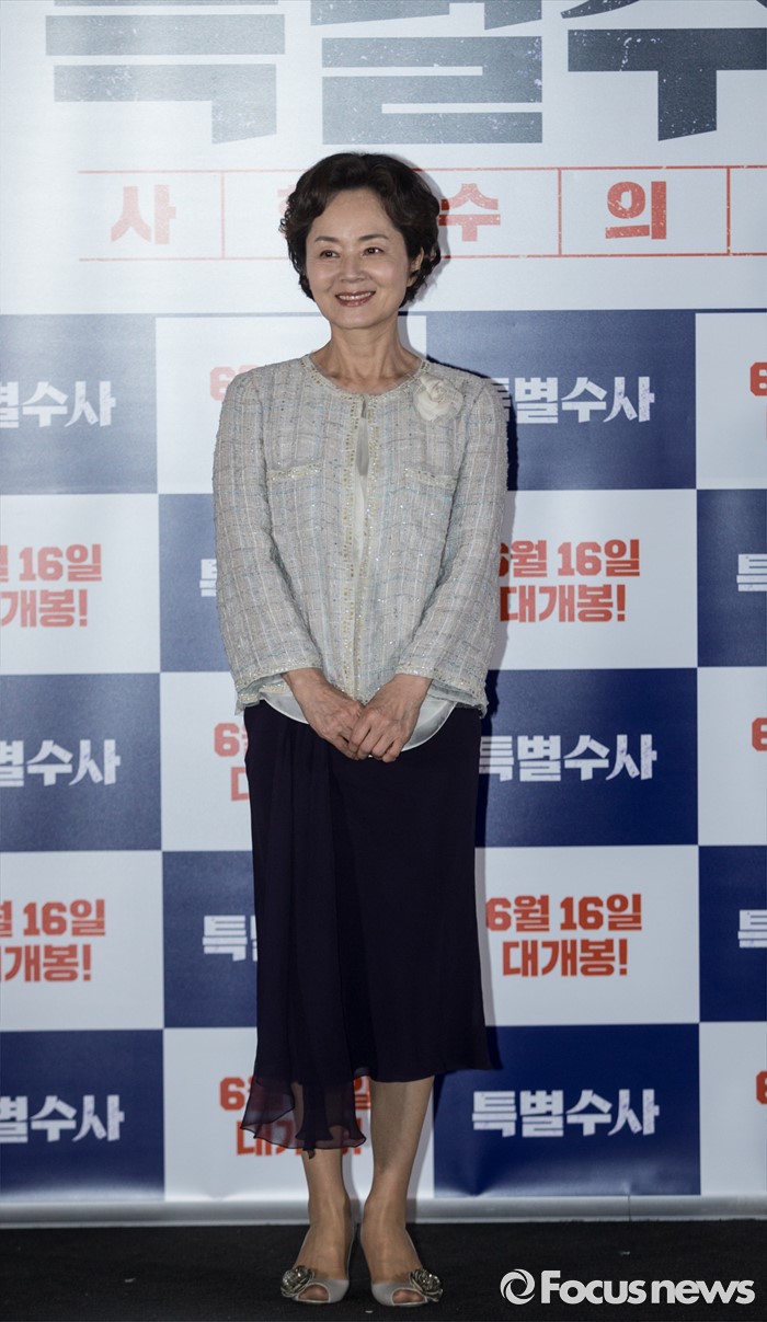(서울=포커스뉴스) 31일 오후 서울 성동구 왕십리 CGV에서 열린 영화 ' 특별수사 : 사형수의 편지' 언론시사회에 참석한 배우 김영애가 포토타임을 갖고 있다.