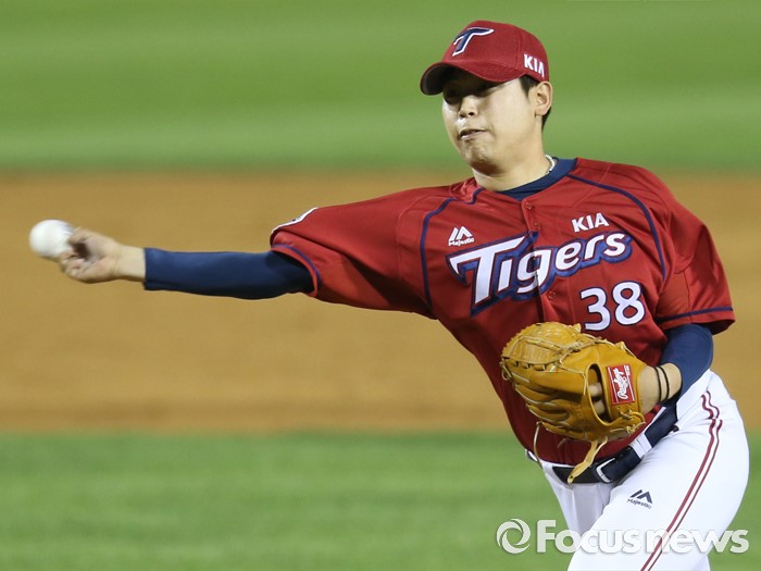 (서울=포커스뉴스) 31일 서울 잠실구장에서 열린 2016 프로야구 KIA-LG 경기 7회말 KIA 투수 박준표가 투구하고 있다.
